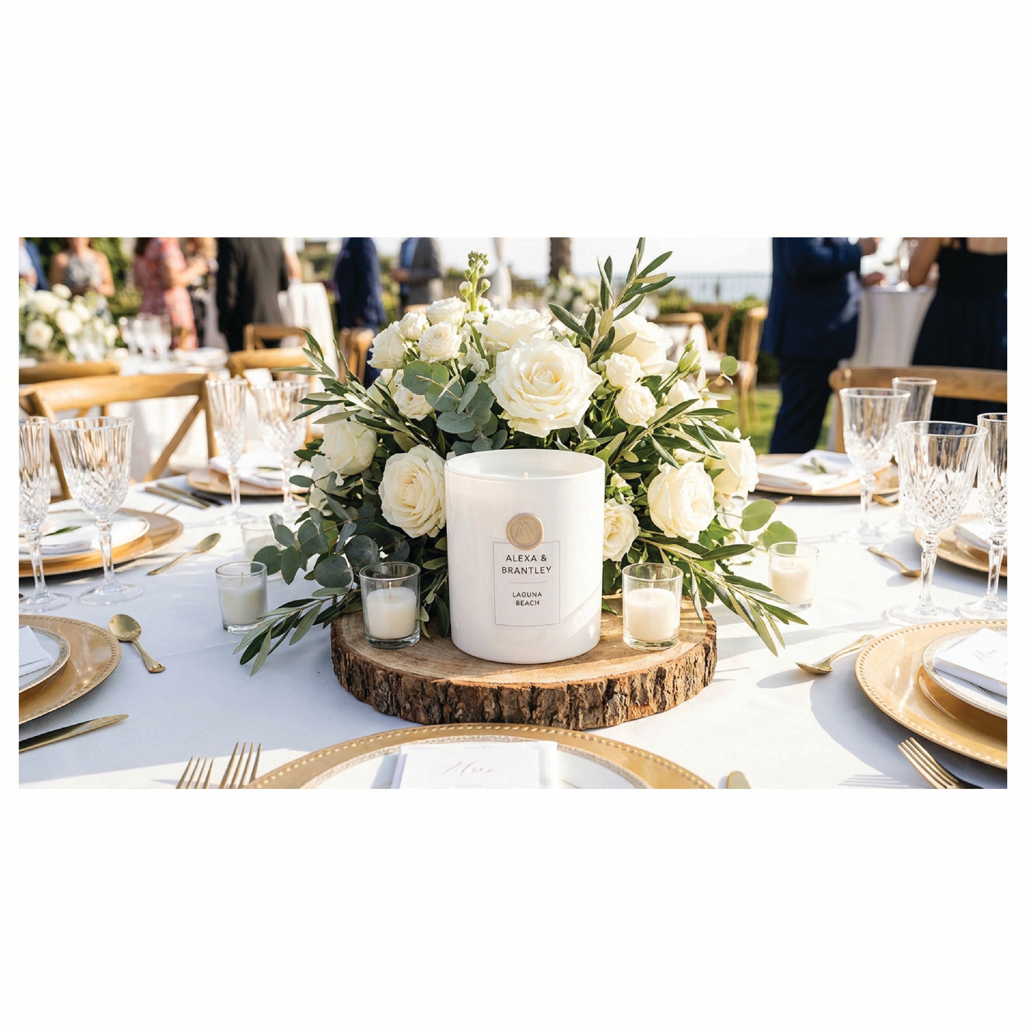 It is your special day. BRAND IT. Branded Wedding Candles Using Our Signature Champagne Fragrance Custom made wedding candles. Provide your name, date and location of the wedding and we...